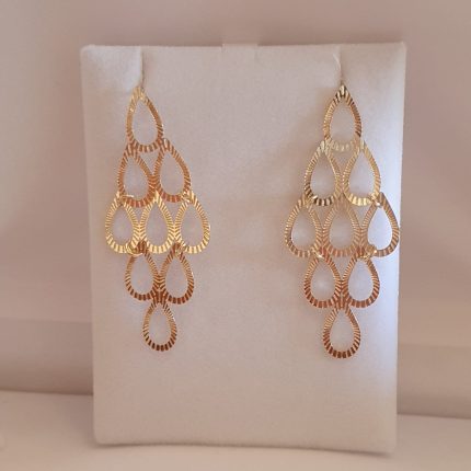 Este proceso consiste en sumergir la pieza en una solución electroquímica que contiene iones de oro, permitiendo que una capa fina de oro se adhiera de manera uniforme sobre la superficie de la joya, posteriormente se agrega una capa de barniz para mayor duración.