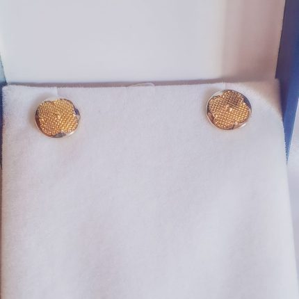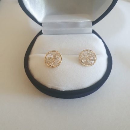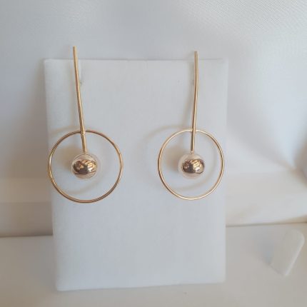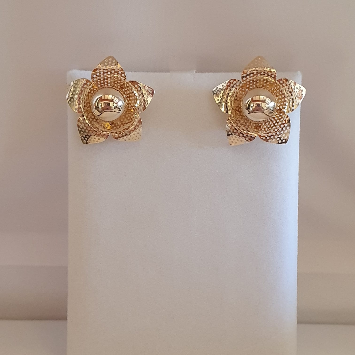 Aro mediano forma de flor con perla de oro central bañado en oro