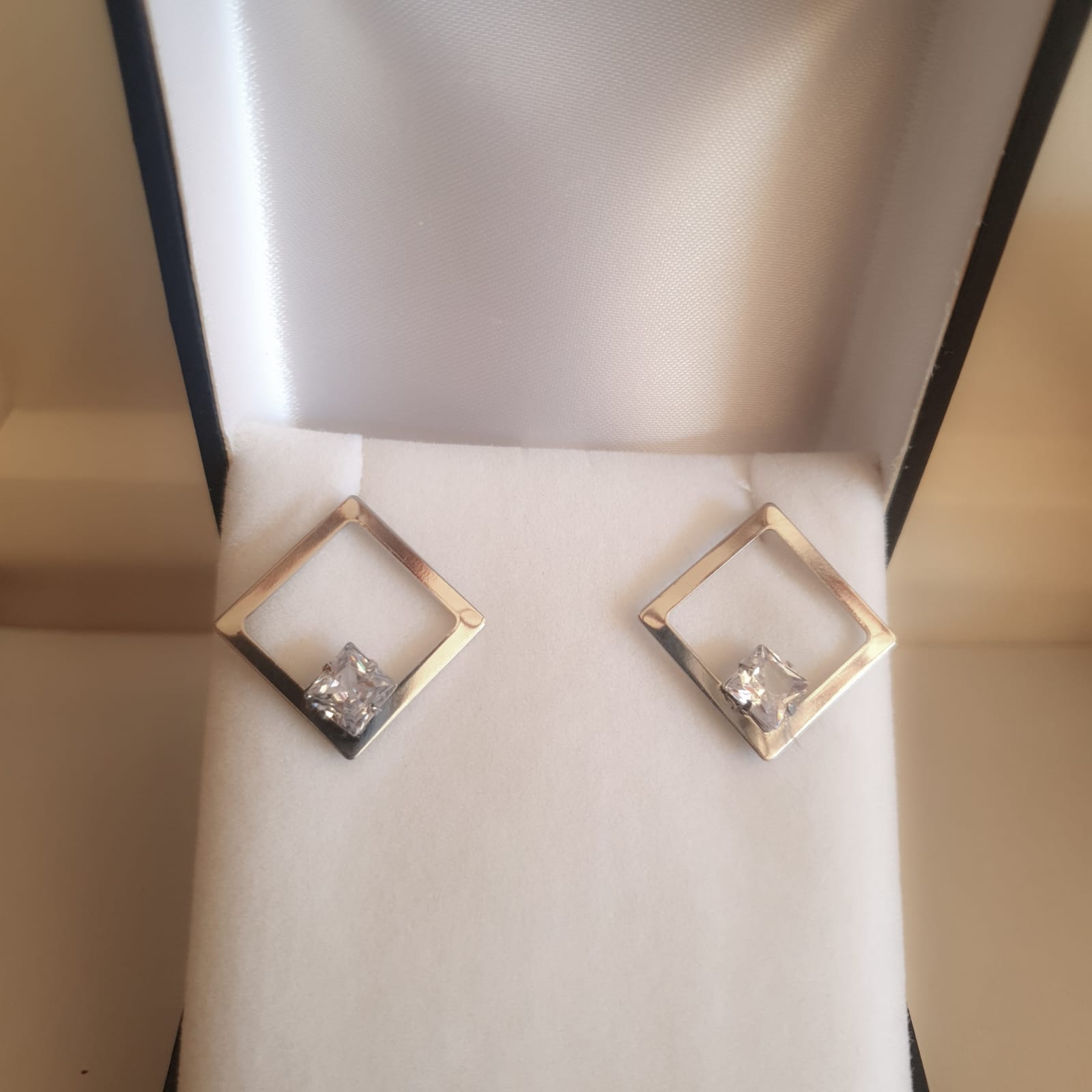 Aros forma de rombo con punto de luz en extremo inferior de acero inoxidable