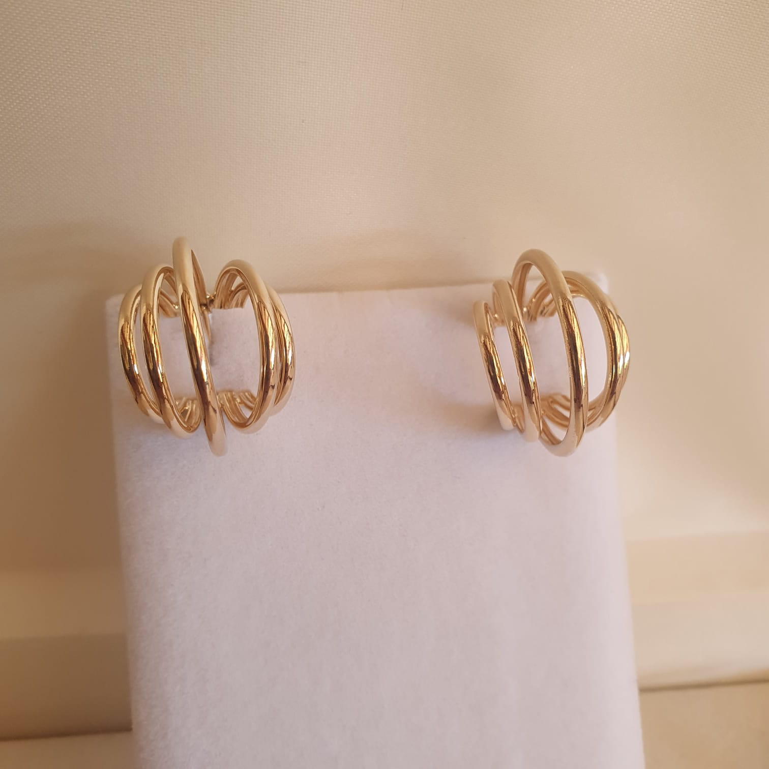 Aros pequeños de cuatro argollas unidas bañado en oro