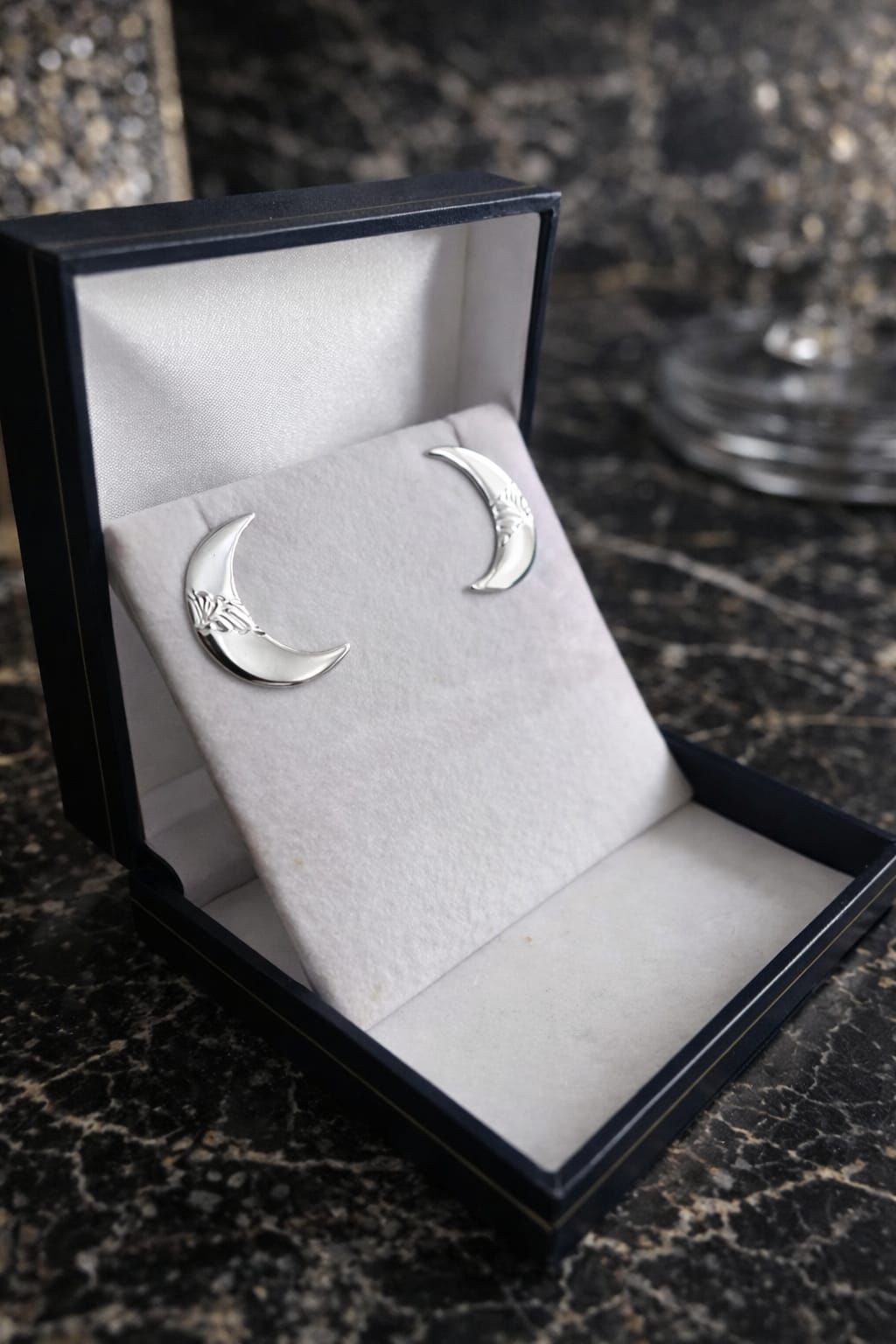 Aros de luna enchapados en rodio