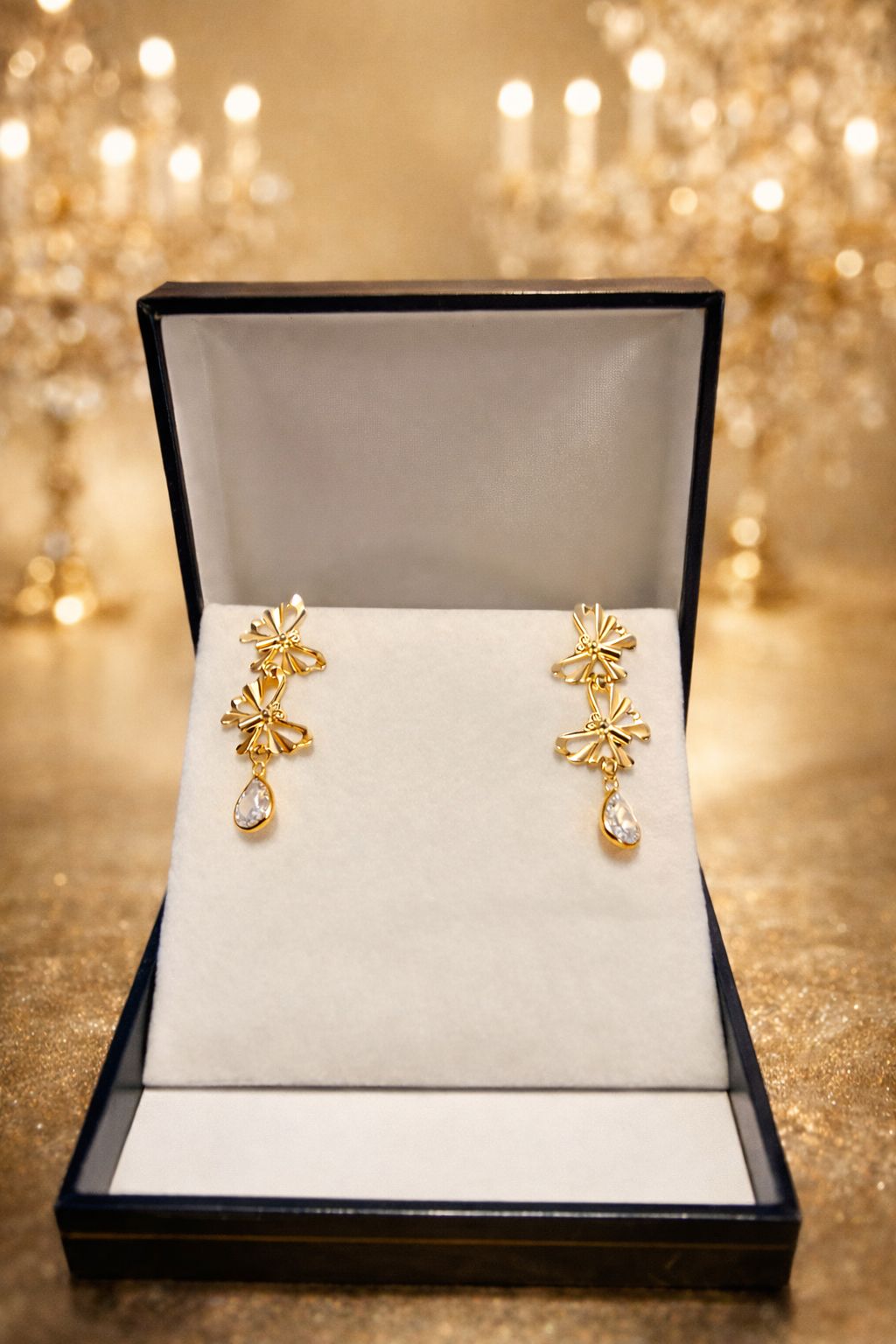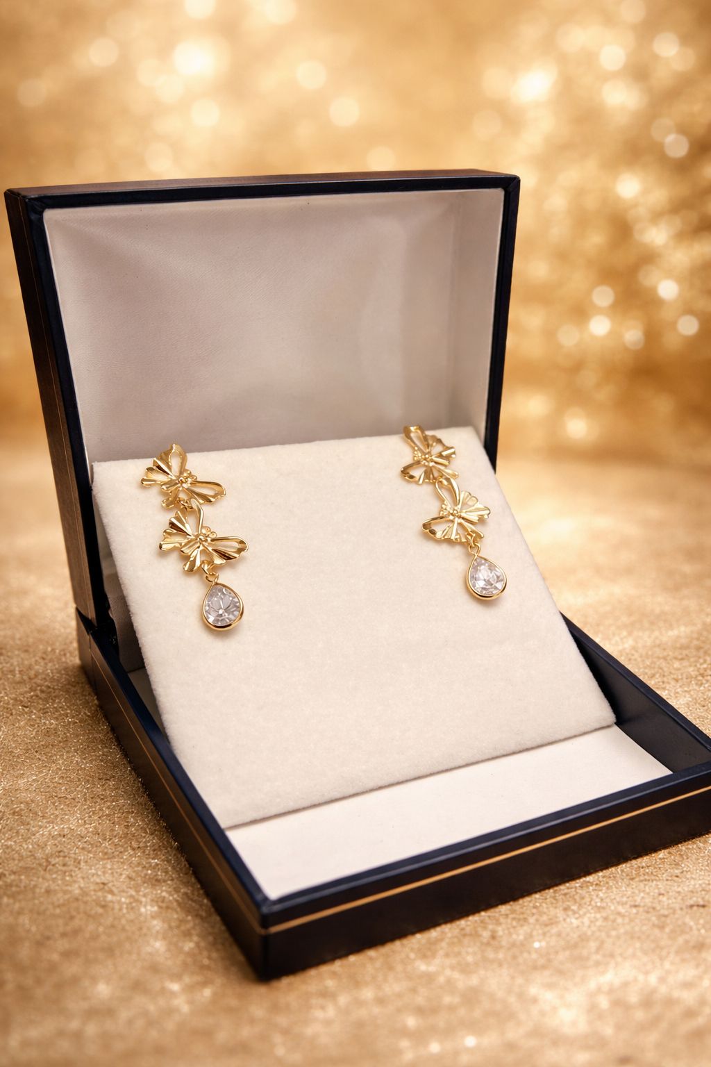 Aros de mariposa con gota de circon enchapados en oro de 18K