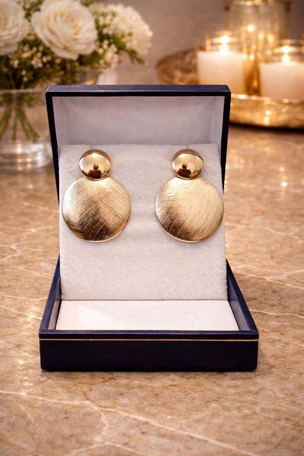 Aros colgantes dos circulos con diseño enchapados en oro de 18KBRO3515B