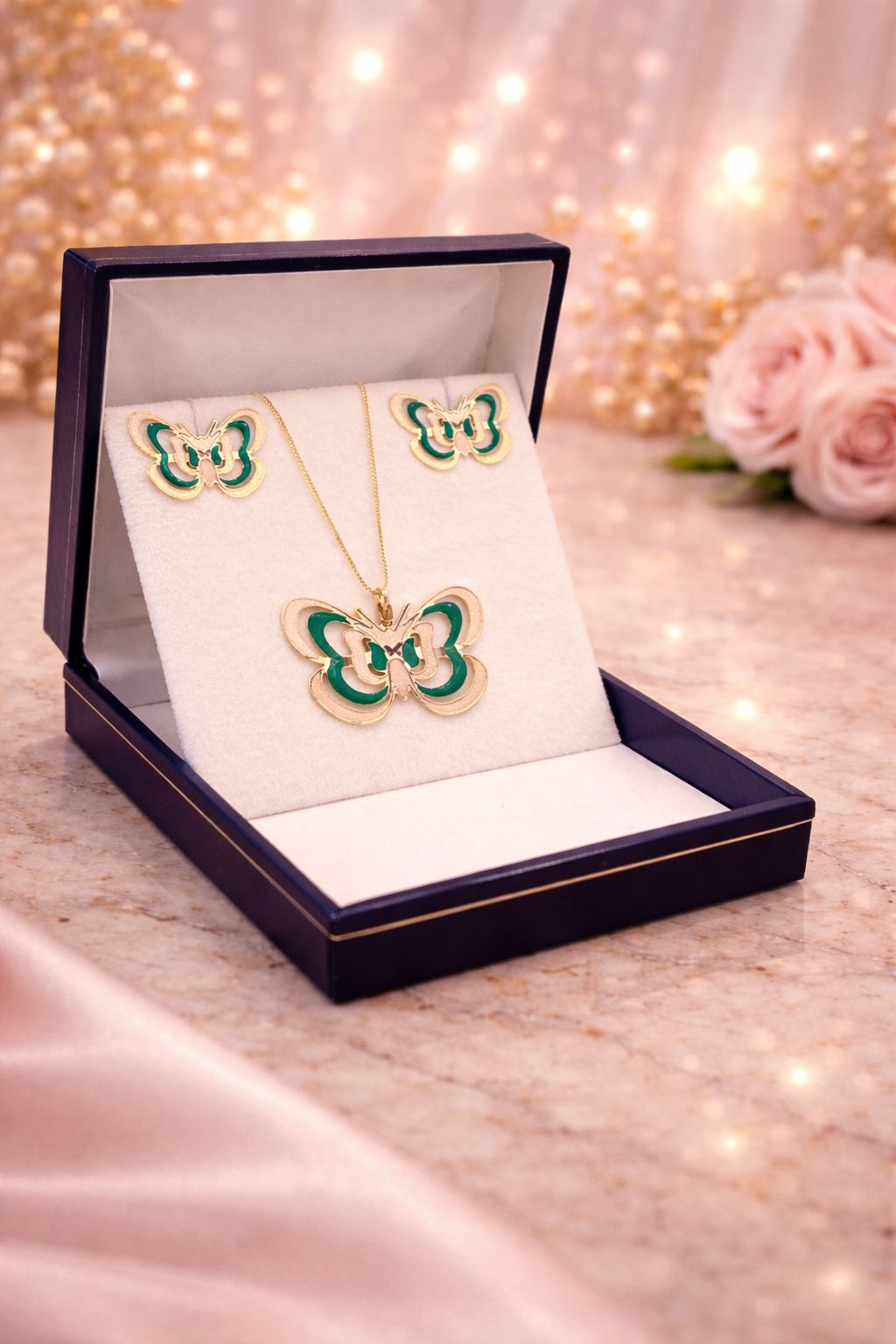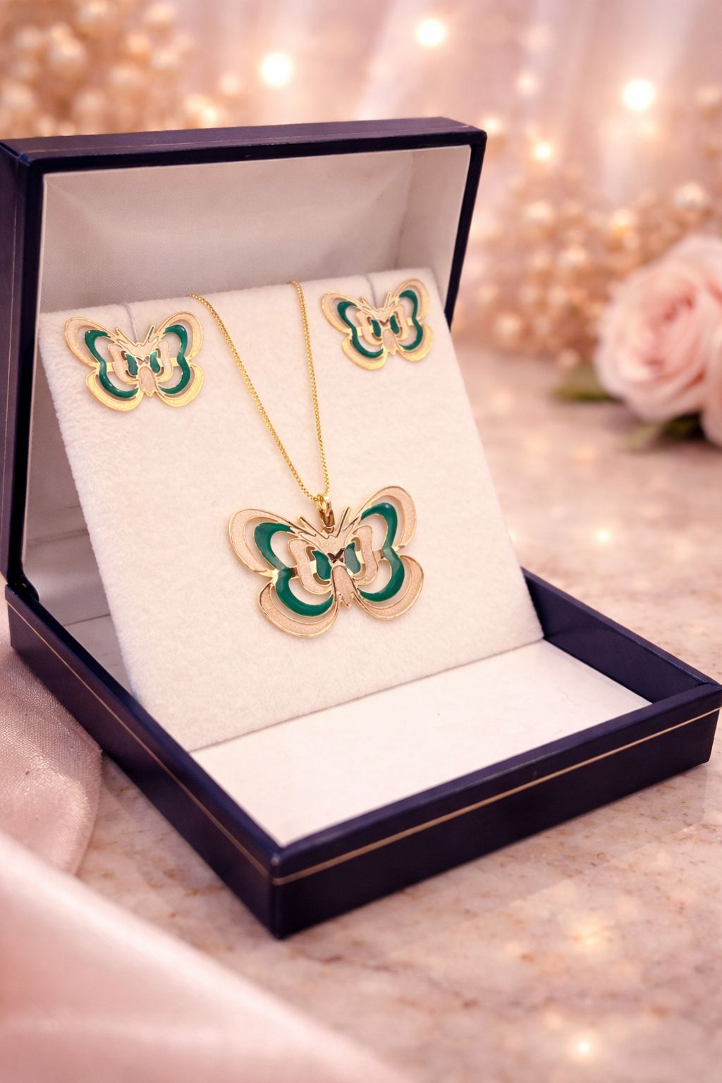 Conjunto de mariposa Verde enchapado en oro 18k