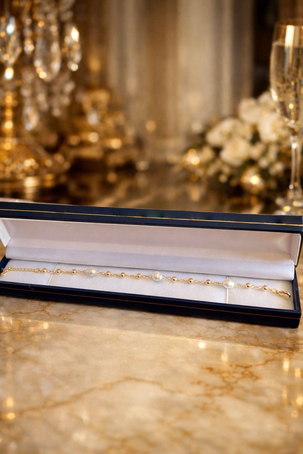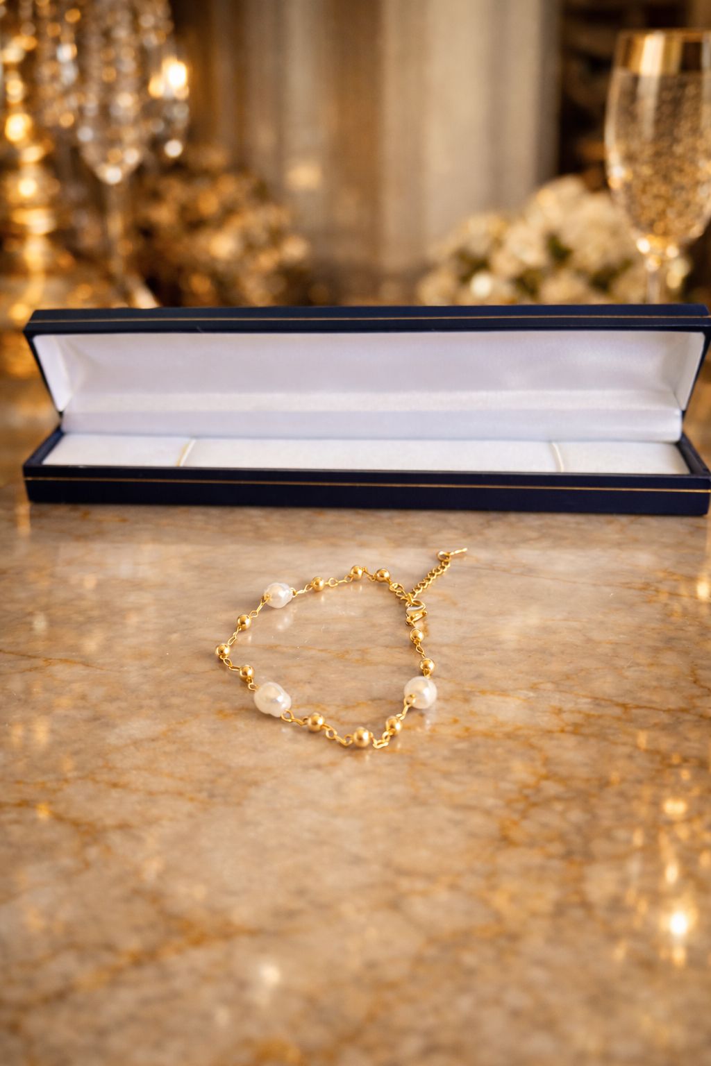 Pulsera de perlas doradas fina enchapada en oro 18K
