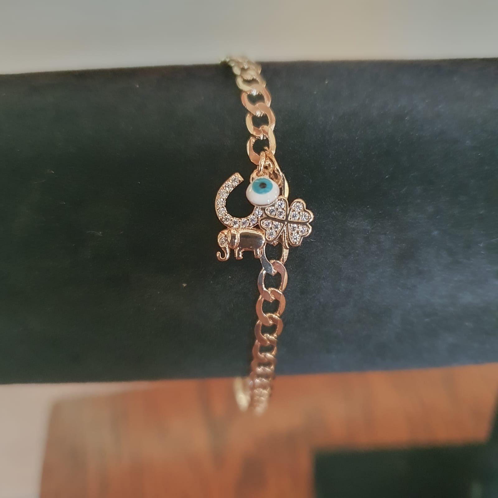 Pulsera de Cadeneta enchapada en oro con 4 Charms de la suerte 18-22 cm