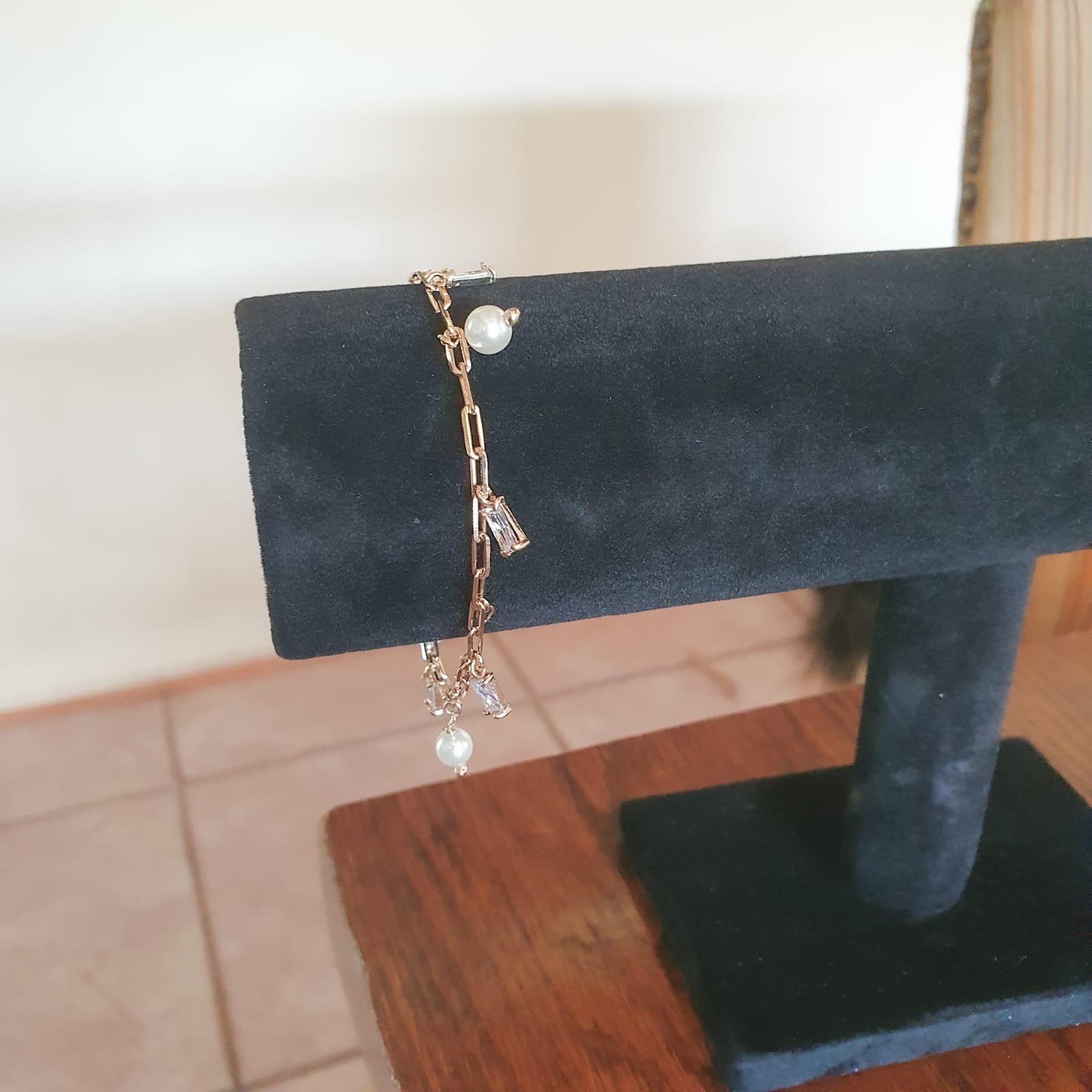 Pulsera de Cadena rectangular enchapada en oro 18K intercalando perlas y circones cuadrados